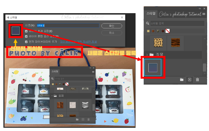 ◎ 스타일(Styles) 패널 : 등록되어 있는 스타일이나 패턴을 선택해 적용할 수도 있고, 자주 사용하는 스타일을 '새 스타일'로 등록해서 사용할 수 있습니다.
