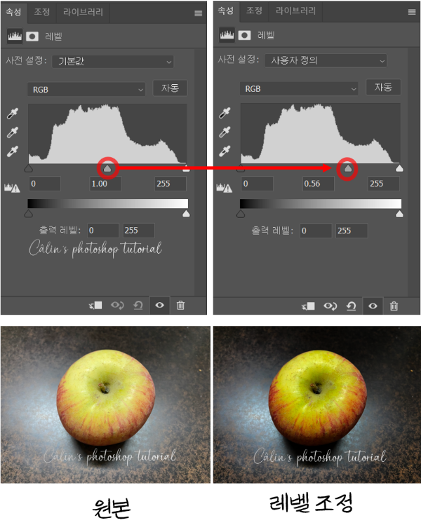 ■ 레벨(Level) : 이미지의 밝기와 대비를 조정합니다.