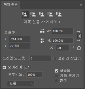 ◎ 복제 원본(Clone Source) 패널: 복제된 이미지의 정보(위치, 크기, 회전)를 보여주는 패널입니다. 각각의 복제 이미지를 관리할 수 있습니다.(패널 상단의 여러 개의 도장 아이콘)