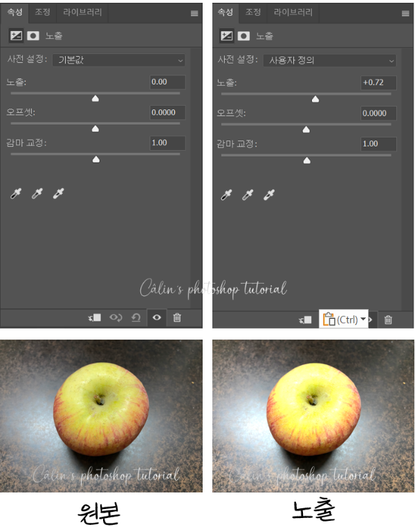 ■ 노출(Exposure) : 빛의 양을 조정합니다.