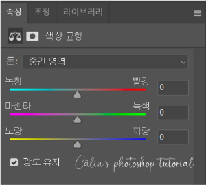 ■ 색상 균형(Color Balance) : 이미지의 색감을 조정합니다.
