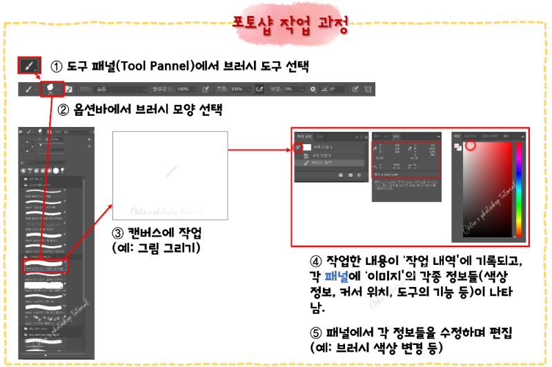 ◎ 브러시 설정(Brush Presets) 패널 : 브러시의 크기, 모양 등 세부 옵션을 설정해 새로운 브러시를 만들어 추가할 수 있습니다.