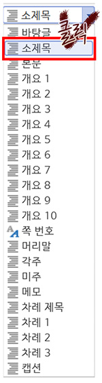 첫 번째 문장에 커서를 둔 상태로 '스타일'을 '소제목'으로 설정했는데