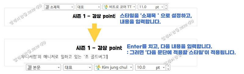 이제 이렇게 만들어진 스타일을 문장이나 문단에 적용해볼텐데요.